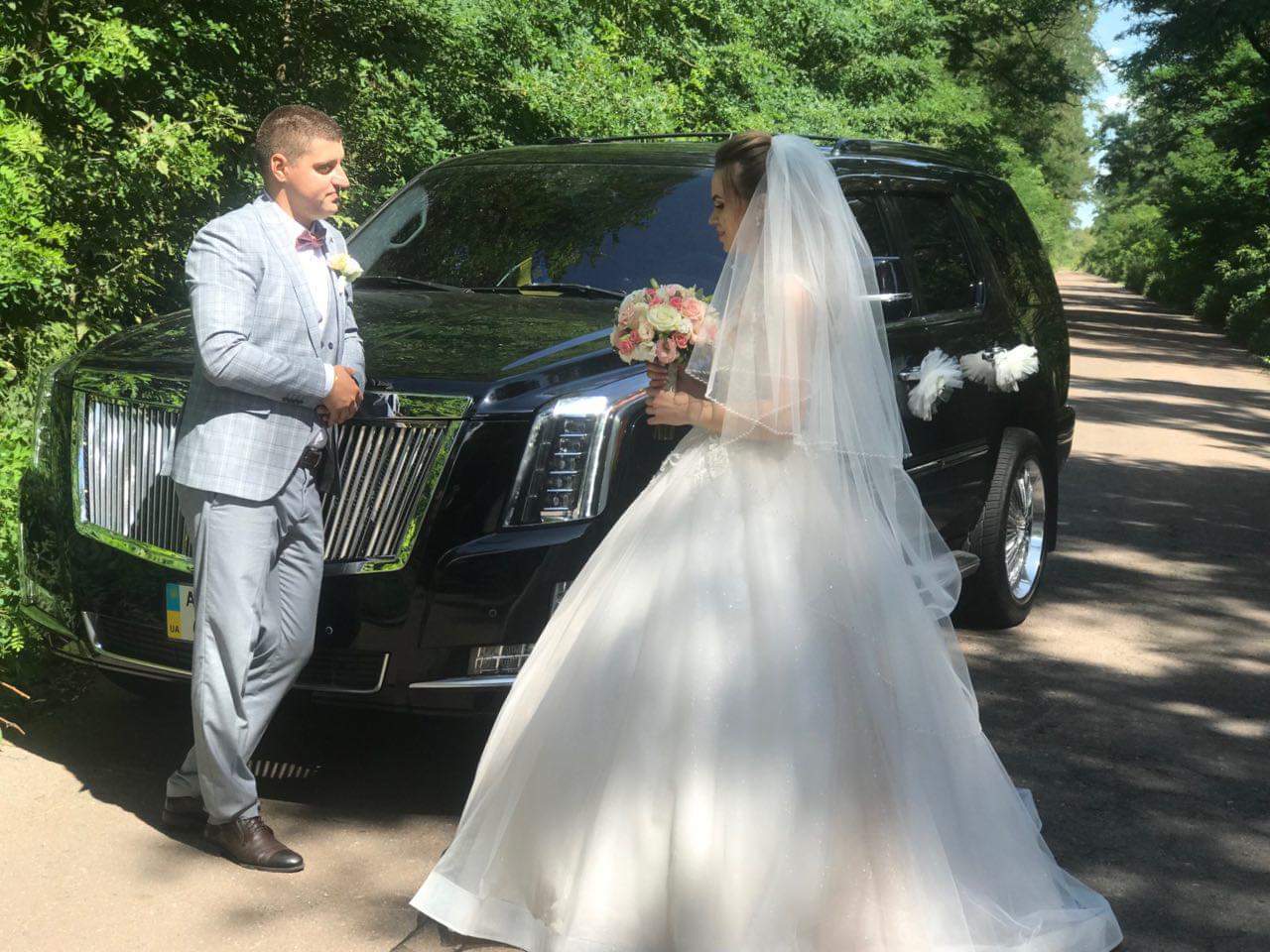 и молодоженами, выбравшими этот свадебный автомобиль в автопарке «Святкового кортежа»